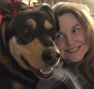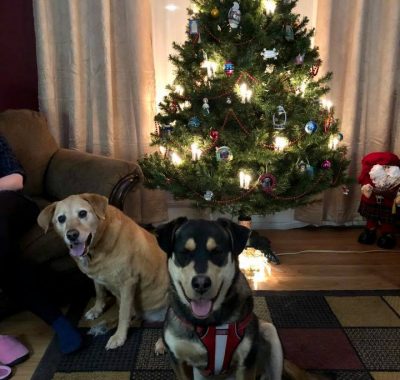 Over the next three weeks, Sheilah visited every few days, building his trust through baby steps. With the help of the staff, she convinced Roy to approach using his favorite food. “I also brought a pair of my socks along one day to leave with him in his kennel, so he could get used to my smell.” Eventually, they went for a walk. “Roy didn’t want me behind him at all; I had to be beside him or in front.” One day, a stranger entered the shelter, “Roy was so scared, he put his paw on my leg and moved closer. I was able to pet him for the very first time,” Sheilah relates. “I promised that day if he chose me, I’d give him a loving home.”