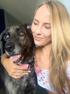 “Stella is my best friend. I got her from the SPCA 6 years ago. She motivates me to get outside and walk everyday even when I don’t feel like it at all. She sleeps beside me every night and she sits on top of me (she’s 65 pounds) when I’m upset or angry. She’s moved to many apartments and finally for the last year I’ve given her the best beach life when we moved, she’s in the ocean almost everyday and chases crabs in the sand and I know she deserves the best. Wouldn’t be here without her love.” – Francheska