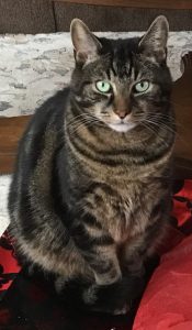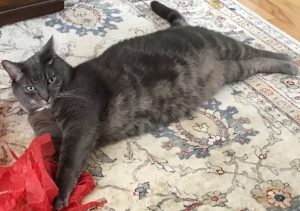 Carolyn’s role as a foster fur-mama didn’t end there. She has also fostered kittens over the years. “It was hard to say good-bye to the kittens, but I was glad to give them a good start in life and knew they’d be adopted into wonderful homes, she said.” Through her experience fostering, Carolyn became a cat person too and ended up adopting two cats – Greyson and Rochester! “I quickly realized that sewing and knitting would be more challenging when you have cats than when you have a dog. The thread and yarn proved very enticing to the boys!” chuckled Carolyn.