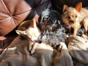 Tim’s family has included several dogs during his lifetime. His family adopted his first dog at the age of 12, a female fox terrier chihuahua mix named Tiny. After Tiny, there was Bruce, Toby and now Kahlua, Gizmo and Precious.