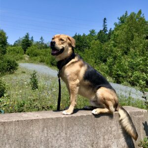 The family is committed to training Timber to be his best self. Fran related “We have completed basic and intermediate classes and are currently taking part in urban-dog walking classes. The classes have helped my confidence with Timber and build trust in his capabilities. Timber’s a smart dog and we are working hard to improve his on-leash behaviour. He was a real puller on-leash at first, and being a bigger dog, we knew it was something we had to work on right away. We use a head collar which helped immediately and in obedience classes, we have worked hard on loose-leash walking as well as building his (and my) confidence to walk past other dogs calmly.”