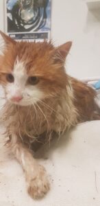 The cat was brought into our Kings SPCA Animal Shelter by our Enforcement team who found him trying to survive by hiding in a runoff pipe. He was hypothermic, his fur was matted and covered in pond debris.