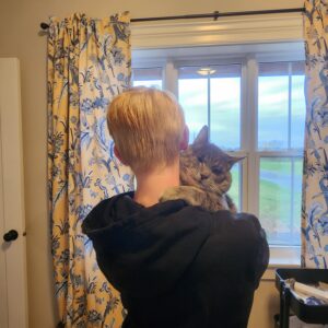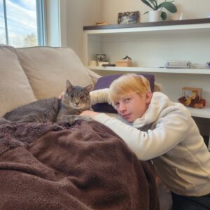 Harris has always loved animals. When the family moved to Nova Scotia in 2016, he wanted a cat. “We took in a stray kitten and named her Spice,” said Janet. “Spice didn’t like to be touched or picked up; she just wanted to be fed. So when Harris met Pirate, this big one-eyed cat that wanted hugs, it was a perfect match! This poor cat just wanted someone to love him and Harris just wanted a cat that would love him back.”