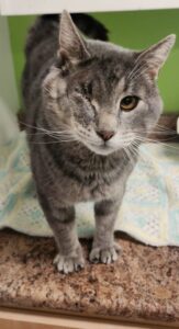 The kitty was in terrible shape when a Good Samaritan found him wandering stray and brought him to safety at the SPCA Kings Shelter. He had chipped teeth, was covered in fleas and was missing his right eye. He needed medical care including surgery to stitch his eye back together. Shelter staff named him Pirate. Approximately 6 years old, Pirate seemed to know that people at the SPCA were helping him. He would snuggle into their chests to show his gratitude and trust. After 44 days of healing and lots of love, Pirate was ready to find his fur-ever home.