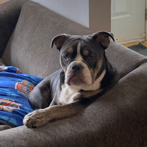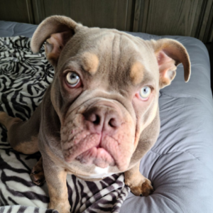 “He is totally in love with his big sister Penelope and they can always be caught playing & cuddling,” smiled Kim. “One of my favorite memories would have to be him learning to give the paw – I thought for sure his love and excitement for food would hold him back from learning to do any tricks at all. And let me tell you, the bedtime ritual includes A LOT of good night kisses – he is a super lovey boy 🙂 Here he is next to his PAW Patrol blanket and in his true role of King of the House.”