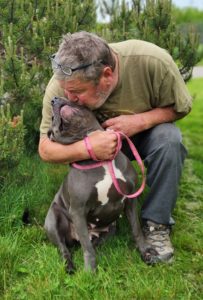 “I love all dogs, but Pitbull breeds get a bad rap,” says Doug. “When I met her for the first time, she was so thin I could count her ribs. I could see her hanging underbelly and could tell she had been used for breeding. I thought to myself that she needed to be loved.”