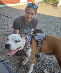 Around the same time Mallory signed up to volunteer, she was also considering a career change that would take her in the direction of working with dogs, a pivot from her career in health care. While it’s a long journey to become a Certified Dog Behaviour Consultant, her initial studies have served her well in her volunteer role. “Knowing about dog body language gives me insight into how the dogs at the shelter are feeling, and that prompts me to help them out in different ways,” explained Mallory. “For example, I’ve learned to reward dogs generously when they are doing something you want (such as looking at you when you call their name). This has not only helped me control dogs that pull very hard on their leash but has created opportunities to involve dogs in fun and mentally engaging games.”