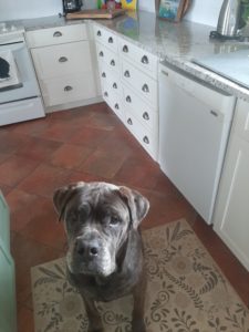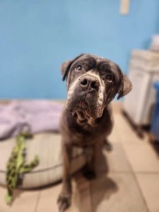 Seven-year old Caesar was a long-term resident at the shelter and was loved by everyone there. Despite his imposing size, Caesar was a big teddy bear. Mary recalls “I think I was steered to Caesar by Grace, the Volunteer Coordinator because he was so easy-going. One of my first questions was ‘Is he a Cane Corso’? My daughter has a Cane Corso named Siren and I just love her. When we moved to Nova Scotia from Ontario, I said to folks, only half-jokingly, that Siren is one of the things I miss the most about leaving!”