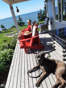 “From the minute Caesar jumped into our vehicle, he became one of the family,” says Bill. “We live on the Bay of Fundy and Caesar loves sitting on the deck by the water or lying in the grass, sniffing the sea air. He also enjoys chewing a big orange ball that came with him from the shelter and chasing squirrels (he has poor eyesight so thankfully he’ll never catch one!). He also adores snuggling. You can be having coffee, reading, or watching tv; Caesar positions himself with his head on your lap and then wriggles until most of his 122-pound body is sitting on you! Oh, and he loves car rides. Last week friends came to visit in a rental car. When they left, Caesar assumed they were going to take him for a car ride. He kept trying to get in!”