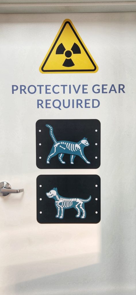A fun door sign found in the Tartan Tails Veterinary Hospital.