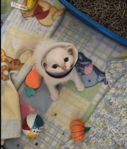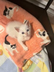 Casper was definitely in need of more care than could be provided at the shelter. He needed someone with knowledge, experience and patience to help him. Enter Staci, one of the Colchester Shelter’s dedicated staff members who agreed to become Casper’s foster mom that same day. Staci had an undergraduate degree in animal science and had gained lots of hands-on experience working at the shelter. She said “I had fostered a lot of sick kittens and had the capacity to take Casper in, so I did. I love fostering sick and orphaned kittens and find it rewarding to play a part in their journey to happily-ever-after.”