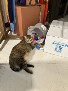 When she’s not greeting people, sunbathing, or keeping residents company, Poppy loves to have fun playing with one of her many toys, chasing her tail, shredding paper and zooming around the unit.