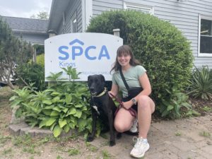 Laura said “Learning about Frank was actually a complete fluke.” After moving from Newfoundland to Halifax, Laura missed her family dogs greatly. She had been thinking about adopting a dog and for months, she kept an eye on the SPCA website. Then life got busy and she stopped checking. Long after her search was suspended, Laura was dog-sitting for a friend and felt inspired to take a look again. “Frank’s photo was the fourth one I saw,” recalled Laura. “I don’t know what drew me to him, but I was hooked. I called my partner Iain Duncan immediately and asked if he wanted to visit the Kings SPCA the next day.”