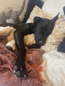 Laura shared “By the time we got to the SPCA, I knew Frank was the only dog I wanted to meet; I felt I knew who I was there for. When we met Frank to take him for a walk, one of the staff members described him as ‘timid but loving’ and I thought that was so endearing. They really hit the nail on the head. While walking Frank, he was so timid, but I could see in those big brown Lab eyes that he had a lot of love to give. Looking back at that moment, I can tell Frank was really longing for his forever home. On June 9th, we were ready to make his wish come true.”