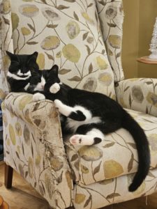 Stanley and Marvin rule the house, and they know it. Gone are the days of being feral kittens, of hiding under the bed, unsure of the person who now constantly buys them toys because they can’t get to them from under the furniture.