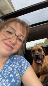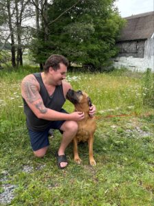“Betsy is the definition of a gentle giant. She is so quiet and so laid back, it is hilarious. She’s the polar opposite of Goose. When we first got her, I think she didn’t know how to be a dog. She was just kind of on autopilot. She was sweet but had no real personality traits. She does now! She’s really come out of her shell. She’s become our second snuggle buddy and the best heated blanket,” Taylor says about Betsy. She adds, “We love to take Betsy into the nursing home I work at. She is just so gentle and patient with everyone and brings them so much joy.”