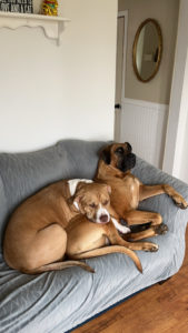 Now, Betsy is a girl who knows what she likes and what she doesn’t, and she’s not afraid to let you know. At the top of the list are naps, treats, and her dad. Betsy will lie down anywhere and every chance she gets, will do anything for a treat or more, and her dad is always in her visual field.