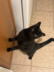 Coleslaw is definitely living his best life. His favorite things to do include sleeping on the couch, playing with strings and his stuffed toys, bird-watching in the window, playing in the water from the tap, playing in the blanket forts that Mitchell builds him (Coleslaw demands them now by digging in the blankets until a fort is made), and cuddling with his humans.