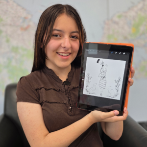 Sophie took to her tablet to start creating an image – and ended up drawing three. The night before she was to present her designs, as she was reviewing them, she thought about all that she had learned on the tour, and a fourth drawing came to mind. It was that drawing that brought staff at the SPCA to tears, and ultimately, it is the one that you will see in shelters, hospitals, and thrift stores.