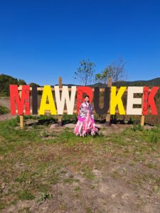 Sophie lives in Nova Scotia and is from the Miawpukek First Nation, located at the mouth of the Conne River on the south coast of Newfoundland. This year, she learned a new form of art by designing dance regalia and proudly wearing that design when she danced in her very first Powwow in her community. “I used my favourite colour, pink,” says Sophie. “I added Mi’kmaq elements such as the double curve motifs, eight point star, L’nuk symbol, and a hieroglyph meaning create.”