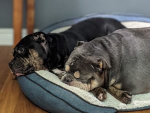 Four year old Rocky immediately made himself at home and had an instant bond with his two new canine siblings. Sean related “Rocky absolutely adores his brothers! Tank is a miniature pitbull who we rescued at 3 days old and Deisel is a pitbull we adopted from the Kings shelter over 10 years ago. Tank and Rocky are quite a bit younger than Diesel so they cause the most ruckus around the house!”
