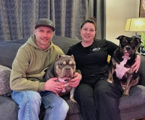 And there was a special someone waiting to give Rocky the love he deserved. Enter the amazing Jessica Hannam, Manager of both the SPCA Kings and Yarmouth Shelters. Jessica and her husband Sean had rescued several dogs over the years and had always had a soft spot for the Bully breeds. Jessica shared “There cannot be enough said for the love, trust and devotion they give when part of a family. When we saw Rocky’s sweet face, big French Bulldog head and soulful eyes begging for love, we just couldn’t resist making him a part of our family! And on July 11th, 2023, we adopted him and made our commitment to love him forever official!”