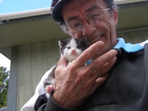 Joe had cats as a kid, and one in his 20’s. When he moved to Yarmouth, he visited the SPCA shelter and adopted Misty in 1997. It was years later, 2010, that Joe became a dedicated volunteer at the Yarmouth Shelter. He didn’t set out to volunteer, but then one day a special cat came into his life.